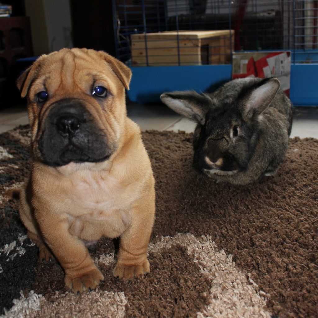 Ach ja, ich habe ganz vergessen, mich vorzustellen: Ich bin jetzt 10 Wochen alt und ein Bull-Pei … Ein was?, fragen Sie? ... Ein Bull-Pei entsteht, wenn eine reinrassige Shar Pei-Dame mit einem Bulldoggen-Herrn fremdgeht. Das Resultat bin ich! – Meine Pflegefamilie ist cool. Ein bisschen blöd ist es, dass ich nicht alles darf ... Ich habe auch schon die Kaninchen kennengelernt und wollte sie natürlich sofort jagen. Die Hühner zu jagen macht auch Spaß, weil die so gern wegflattern, und Katzen sind auch plem-plem ...