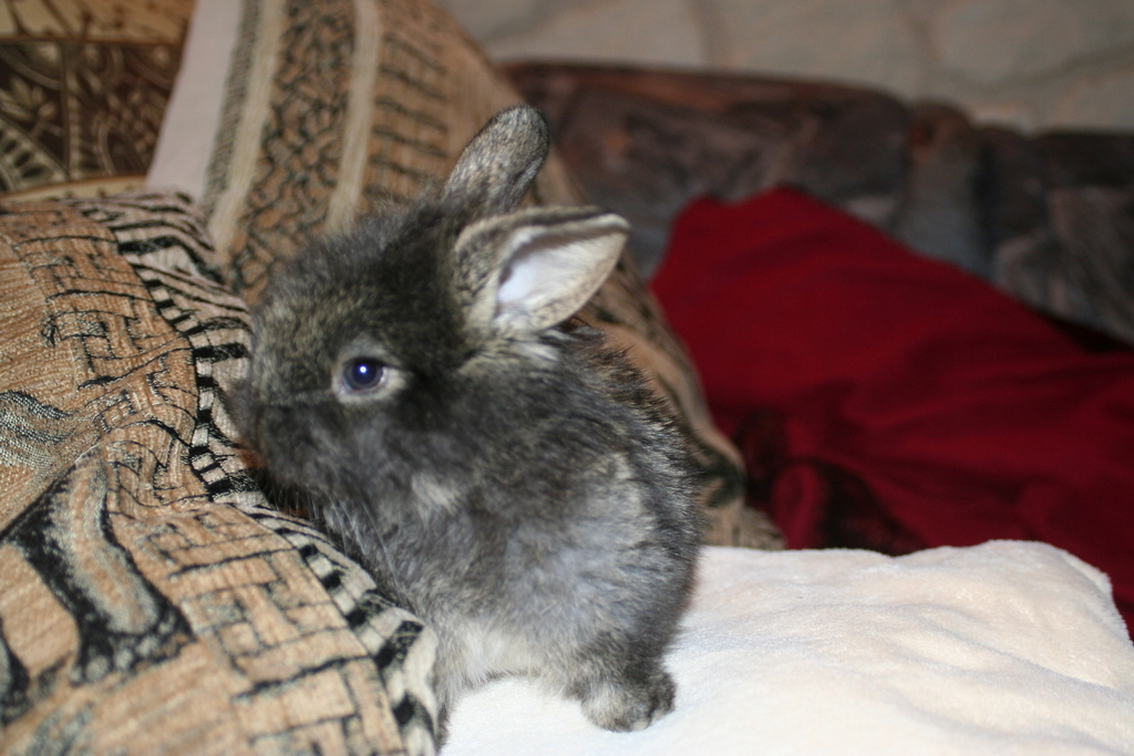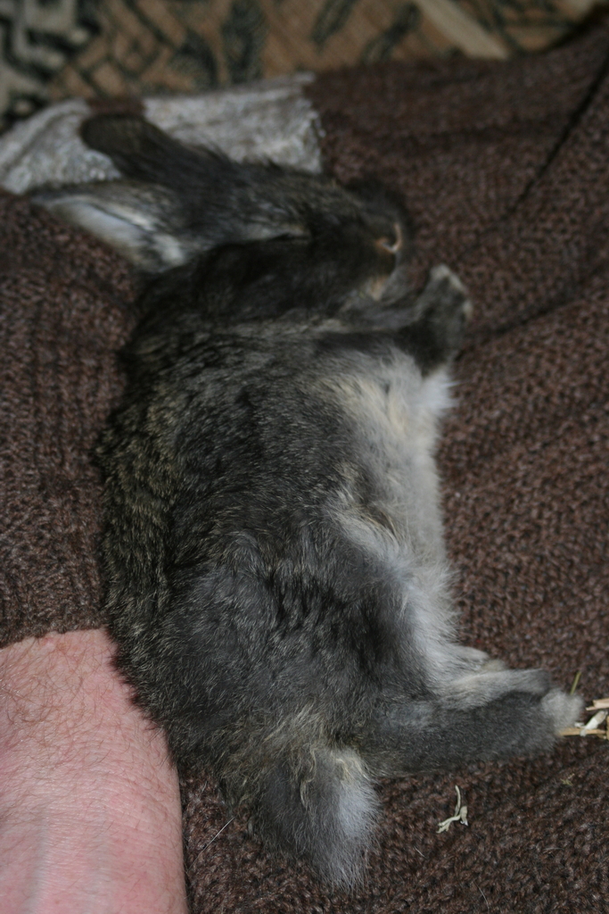 Ich bin der „Hoppel“. Das heißt, bis vor Kurzem war ich „Hasilotte“, denn alle dachten, ich wäre ein Hasenmädchen. Doch sie haben sich getäuscht, denn ich bin ein Hasenjunge. Meine Mutter hatte fünf Babys, die sie alle – außer mir – getötet hat. – Sie kommt aus dem Tierheim, wer weiß also, was sie dort schon erlebt hatte. Sie war eine sehr, sehr, SEHR große Häsin, die nennt man, glaube ich „Deutscher Riese“. Mein Hasenpapa ist unbekannt. Ich bin das einzige überlebende Hasenbaby. Frau Hempel hat mich mit der Flasche großgezogen. Ich bin sechs Wochen alt, bin sehr groß und mutig (wie alle Hasen), habe eine Menge Hasenideen und trinke immer noch aus dem Fläschchen. Ich darf alles! Frau Hempel und ihr Freund nennen mich ihren Hasensohn. Ich habe einen großen Käfig mitten im Wohnzimmer mit allem Drum und Dran, was ein Kaninchen so braucht. Zum Hakenschlagen darf ich raus, und dann rase ich durchs ganze Haus. Ich habe schon Löcher ins Sofa gemacht, die Tapete angeknabbert und die elektrischen Leitungen inspiziert – weshalb ich Riesenärger bekommen habe! Ich werde für immer bei Frau Hempel bleiben. Mal sehen, was sie mir in meinem Hasenleben noch so zu bieten hat!
