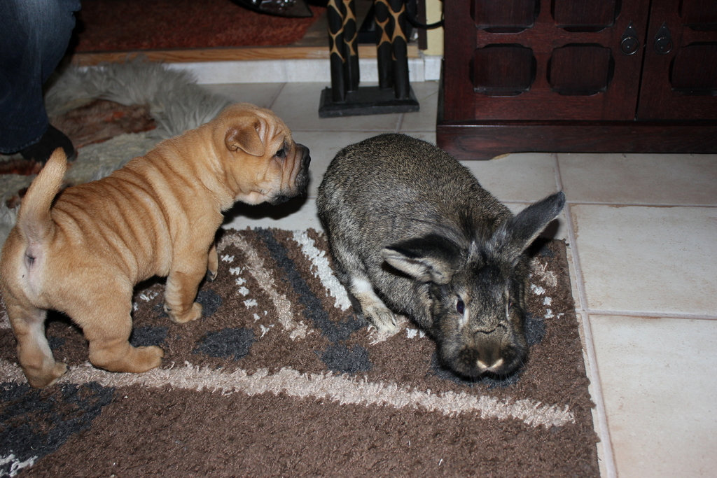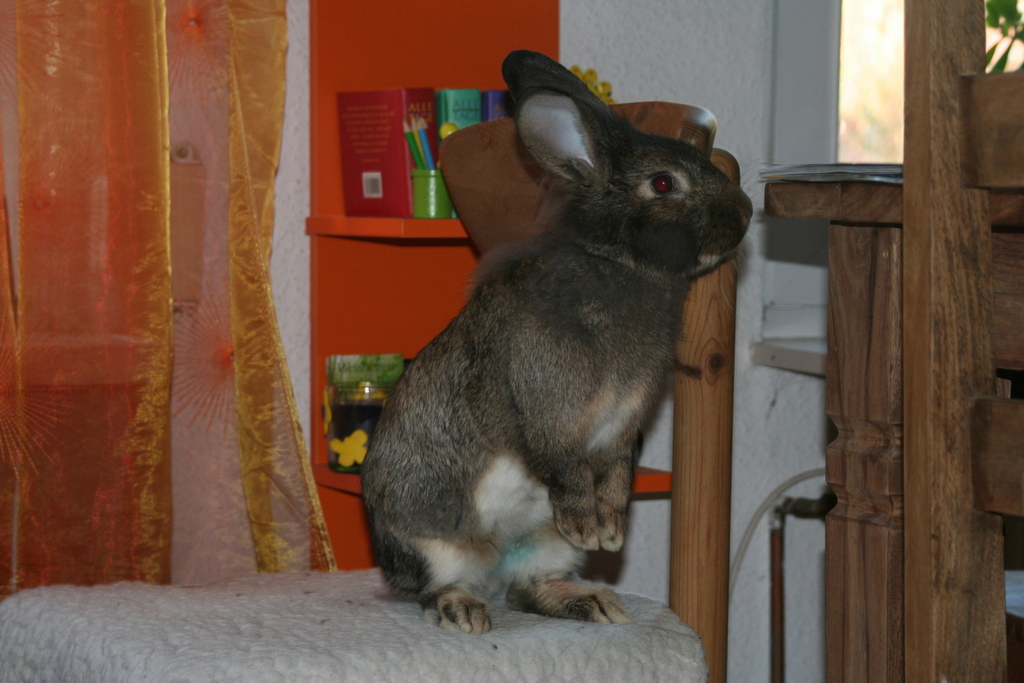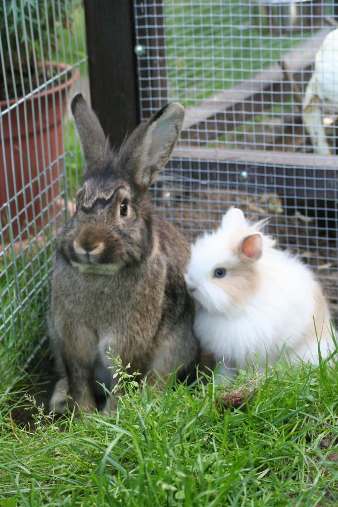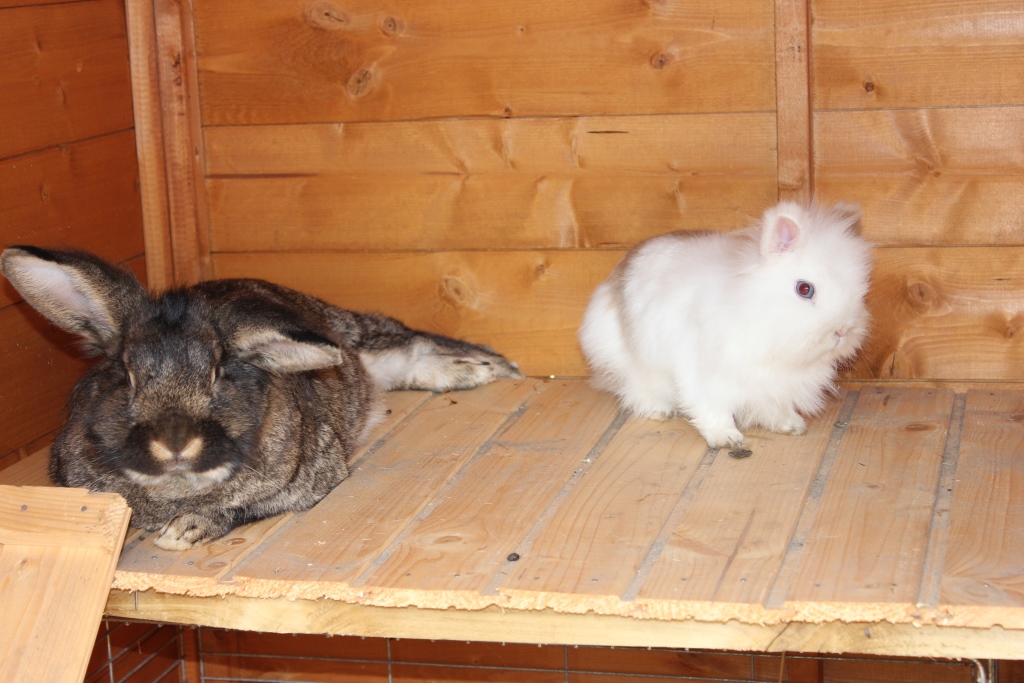 Wir sind acht Kaninchen und wohnen in Schöneiche bei Frau Hempel. Der Deutsche Riesen-Mix Hoppel war ein Waisenkind und wurde per Hand aufgezogen. er darf alles und wird auch Kaninchensohn genannt. Er wohnt zusammen mit Fräulein Nix (Zwerglöwenkopfkaninchen) im Wohnzimmer. Josephine, ein lohfarbenes Zwergkaninchenmädchen wohnt mit seinen drei Babys auch im Haus. Das Blau Farbenzwergkaninchen Isabell wohnt zusammen mit dem lohfarbenen Zwergkaninchen Frikassee (das seinen Namen daher trägt, dass es davor gerettet wurde, als Frikassee zu enden) draußen im Stall. Wenn das Wetter schön ist, dürfen wir im Sommer aber alle abwechselnd mit ins Haus und in den Garten.