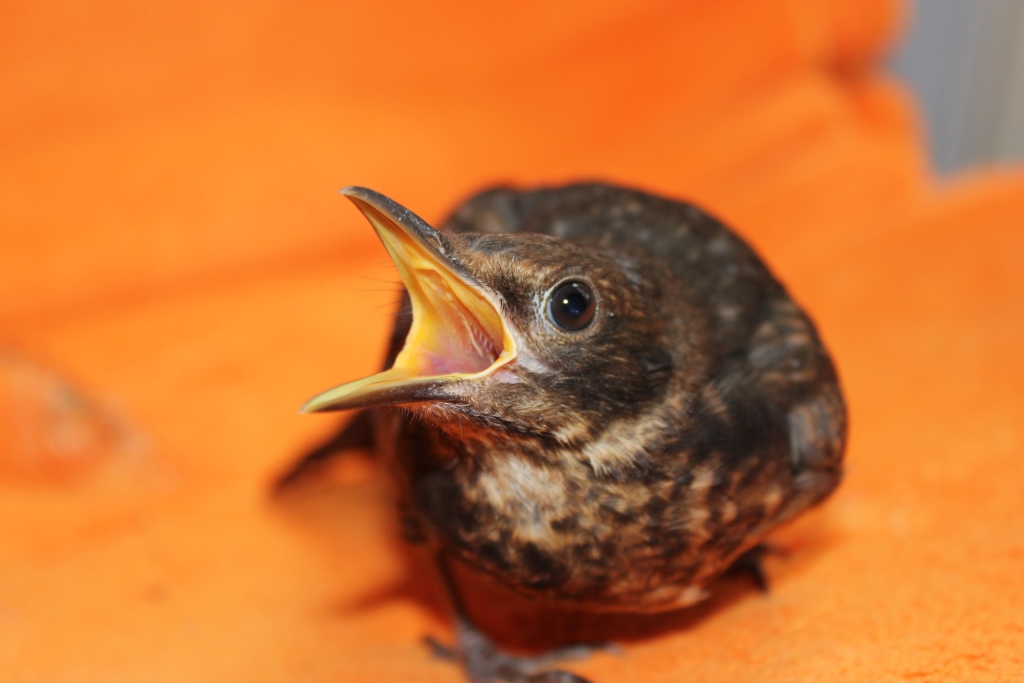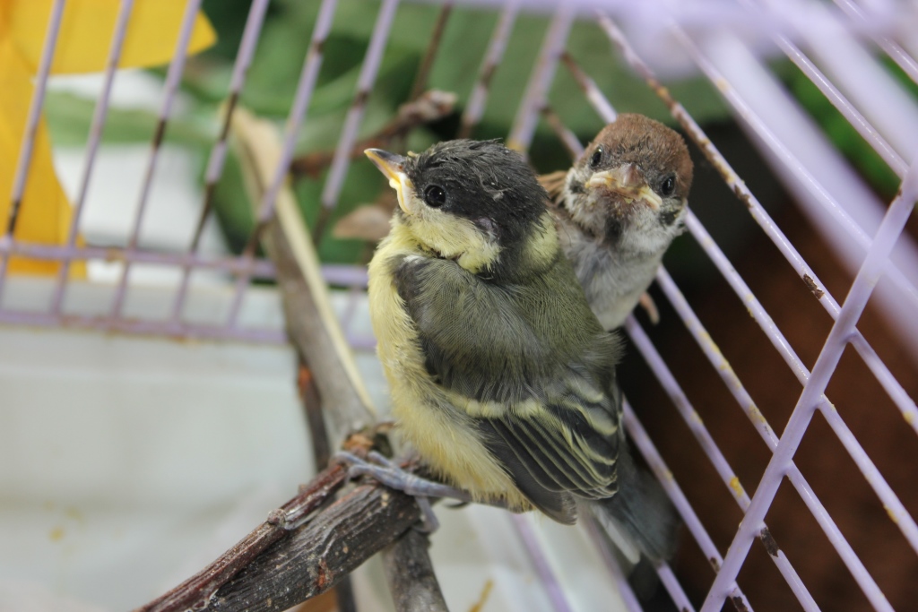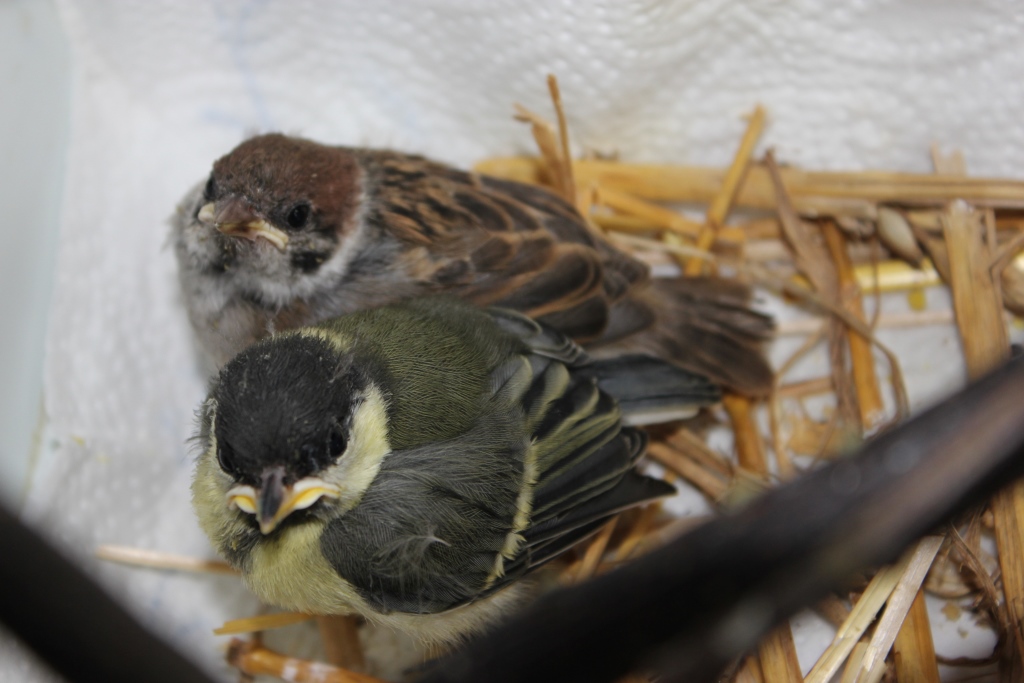 Auch andere Waisenkindern landeten in der Tierarztpraxis. Dank Mühe, Geduld und viel Arbeit schaffen es die meisten und werden im Garten in Schöneiche wieder ausgewildert, so auch die Meise und die Drossel auf den Fotos.