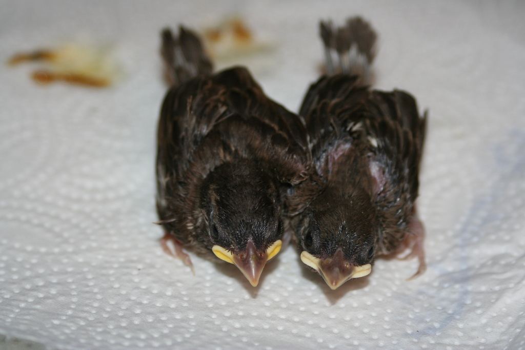 Aus allen Ecken Berlins und Brandenburgs werden uns vom Frühling bis spät in den Sommer hinein Spatzenbabys gebracht. „Gummibärchen“ nennen wir sie, wenn sie frisch geschlüpft und nackt bei uns ankommen. Ein jedes hat auf seine Weise seine Spatzenfamilie verloren. Wir ziehen sie in der Tierarztpraxis groß. Alle dreißig Minuten, von Sonnenaufgang bis Sonnenuntergang, müssen sie mit Eierbrei gefüttert werden. Sobald sie „futterfest“ sind und selbst fressen können, kommen sie in Spatzengruppen in eine Außenvoliere in Schöneiche. Dort bleibt dann stets ein Türchen offen, damit sie nach Gutdünken den Garten erkunden können. Solange sie möchten, können sie zum Essen und zum Schlafen wieder hinein. Aber irgendwann sind sie alle wieder Wildspatzen.