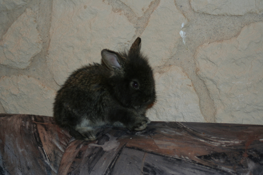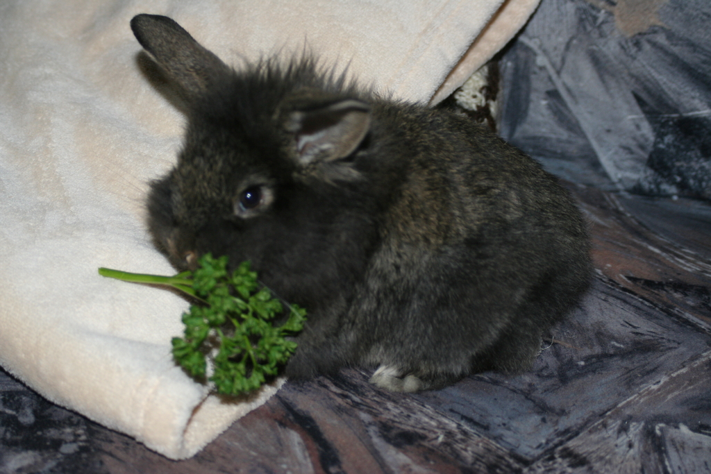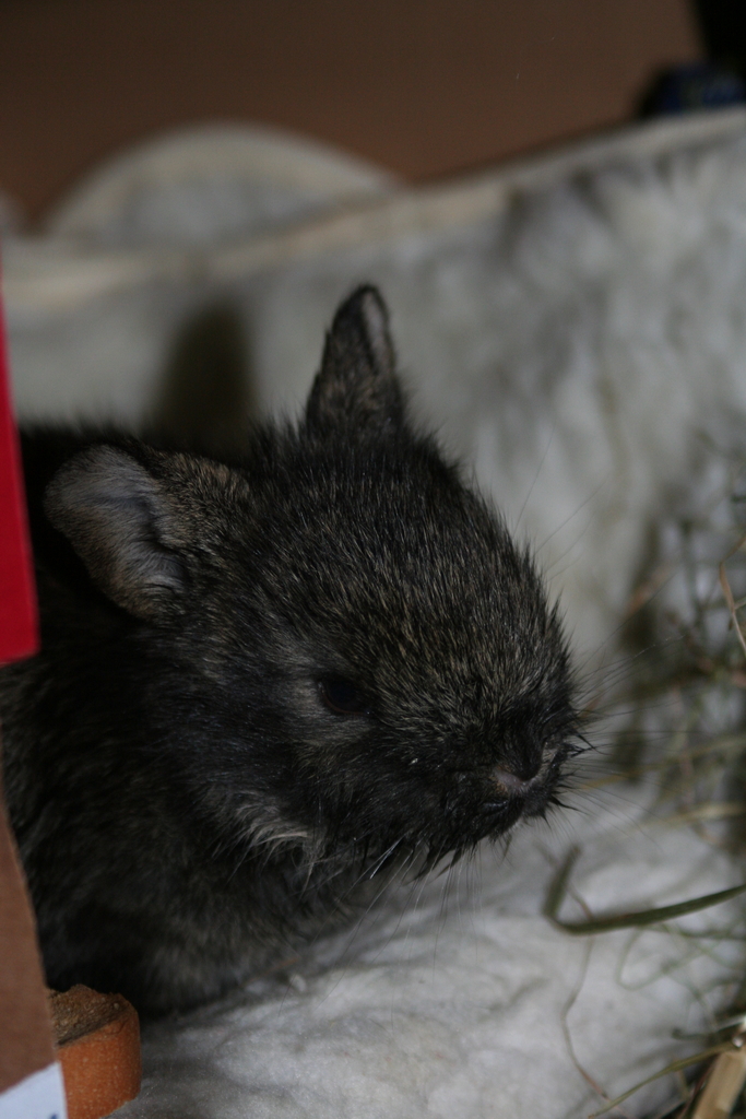 Ich bin der „Hoppel“. Das heißt, bis vor Kurzem war ich „Hasilotte“, denn alle dachten, ich wäre ein Hasenmädchen. Doch sie haben sich getäuscht, denn ich bin ein Hasenjunge. Meine Mutter hatte fünf Babys, die sie alle – außer mir – getötet hat. – Sie kommt aus dem Tierheim, wer weiß also, was sie dort schon erlebt hatte. Sie war eine sehr, sehr, SEHR große Häsin, die nennt man, glaube ich „Deutscher Riese“. Mein Hasenpapa ist unbekannt. Ich bin das einzige überlebende Hasenbaby. Frau Hempel hat mich mit der Flasche großgezogen. Ich bin sechs Wochen alt, bin sehr groß und mutig (wie alle Hasen), habe eine Menge Hasenideen und trinke immer noch aus dem Fläschchen. Ich darf alles! Frau Hempel und ihr Freund nennen mich ihren Hasensohn. Ich habe einen großen Käfig mitten im Wohnzimmer mit allem Drum und Dran, was ein Kaninchen so braucht. Zum Hakenschlagen darf ich raus, und dann rase ich durchs ganze Haus. Ich habe schon Löcher ins Sofa gemacht, die Tapete angeknabbert und die elektrischen Leitungen inspiziert – weshalb ich Riesenärger bekommen habe! Ich werde für immer bei Frau Hempel bleiben. Mal sehen, was sie mir in meinem Hasenleben noch so zu bieten hat!