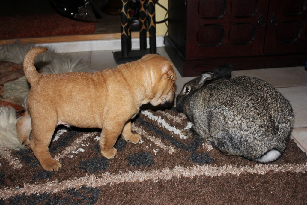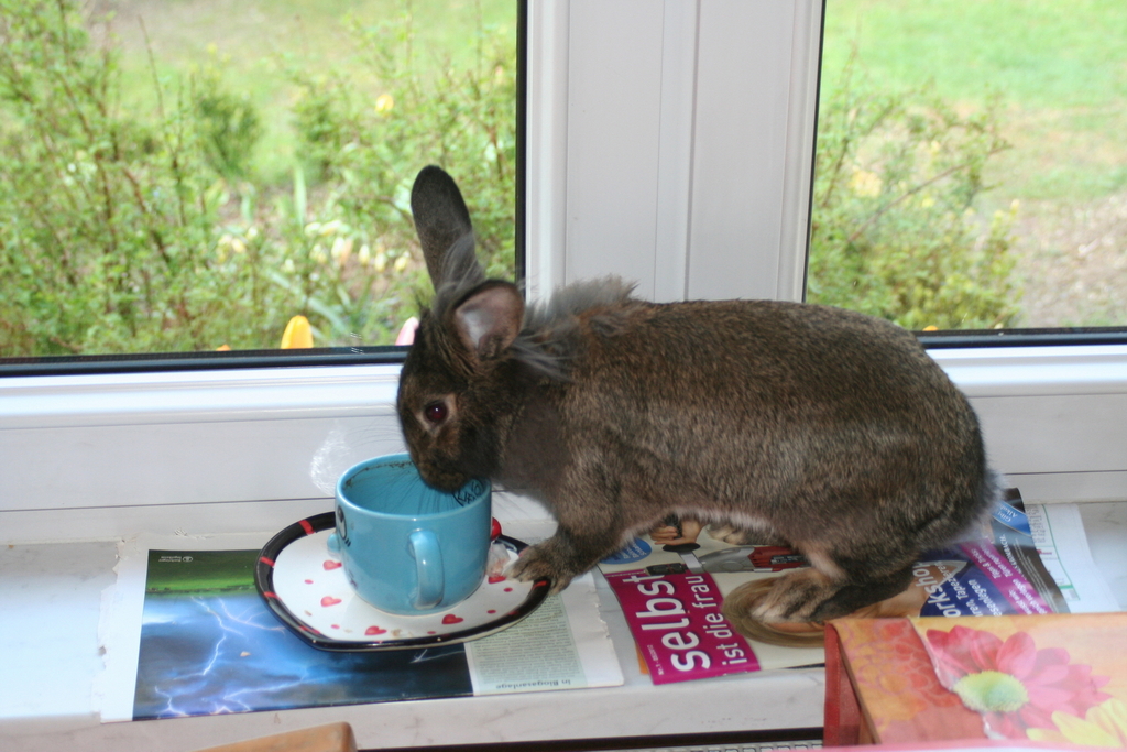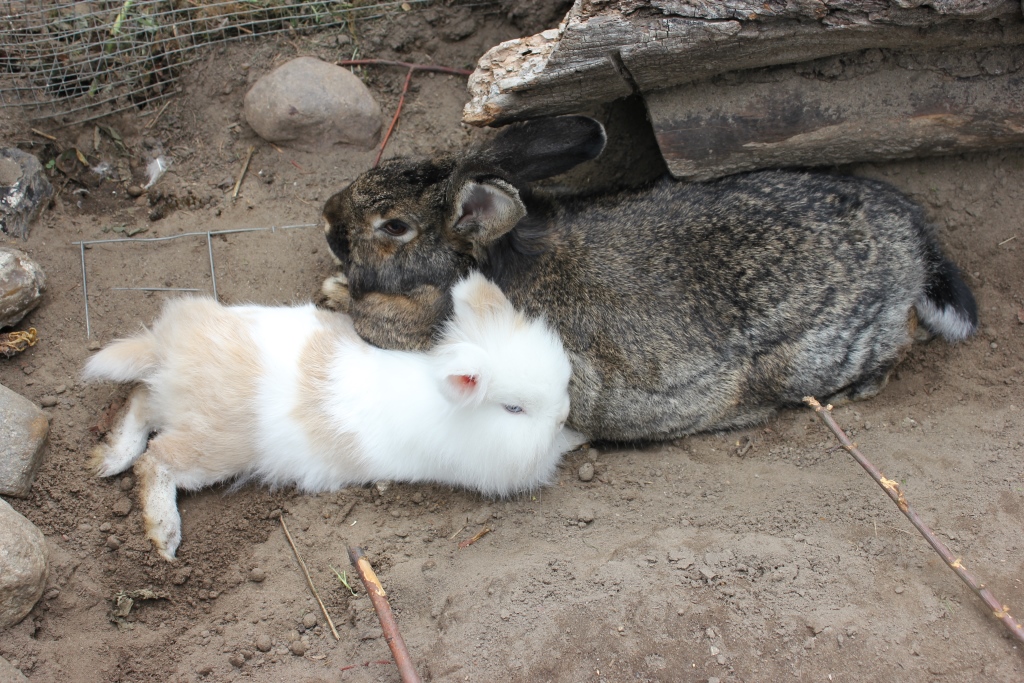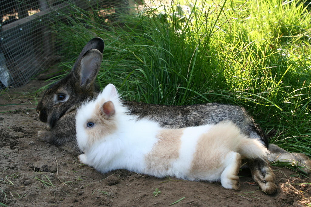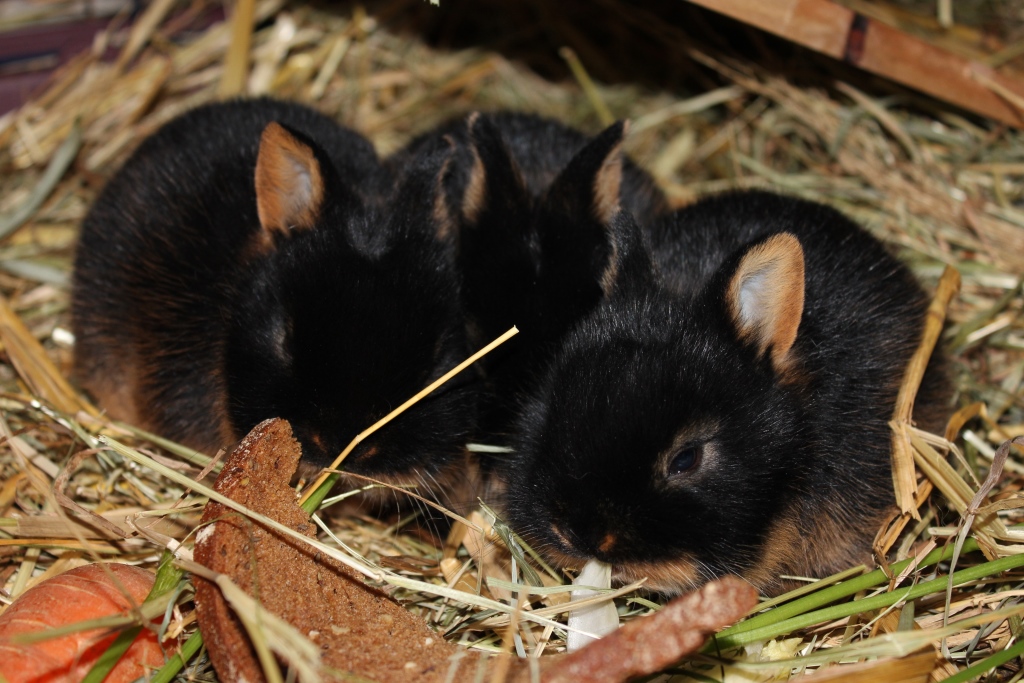 Wir sind acht Kaninchen und wohnen in Schöneiche bei Frau Hempel. Der Deutsche Riesen-Mix Hoppel war ein Waisenkind und wurde per Hand aufgezogen. er darf alles und wird auch Kaninchensohn genannt. Er wohnt zusammen mit Fräulein Nix (Zwerglöwenkopfkaninchen) im Wohnzimmer. Josephine, ein lohfarbenes Zwergkaninchenmädchen wohnt mit seinen drei Babys auch im Haus. Das Blau Farbenzwergkaninchen Isabell wohnt zusammen mit dem lohfarbenen Zwergkaninchen Frikassee (das seinen Namen daher trägt, dass es davor gerettet wurde, als Frikassee zu enden) draußen im Stall. Wenn das Wetter schön ist, dürfen wir im Sommer aber alle abwechselnd mit ins Haus und in den Garten.