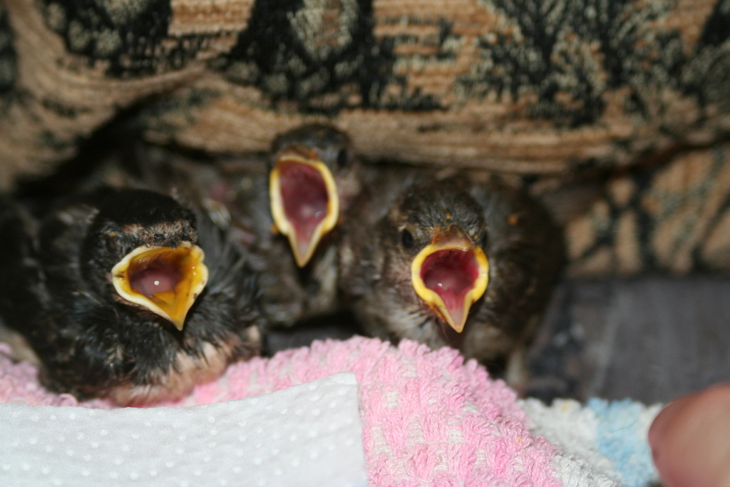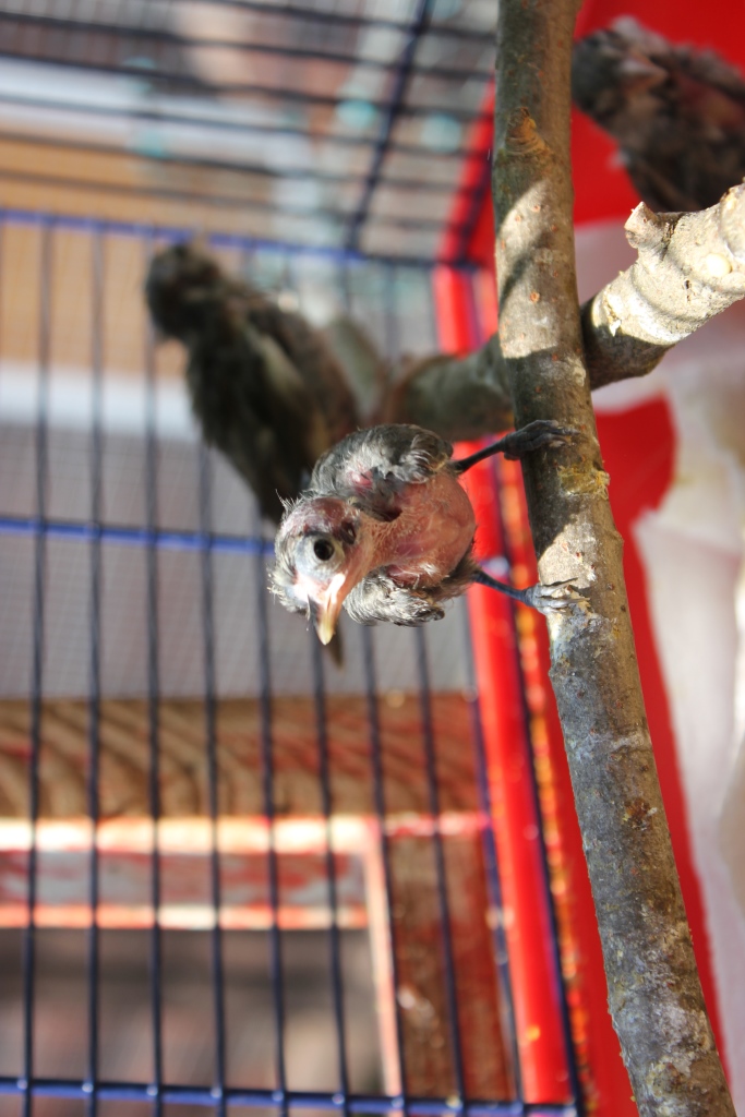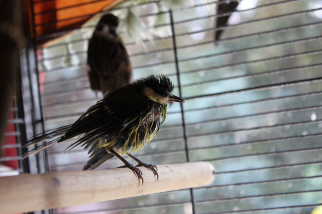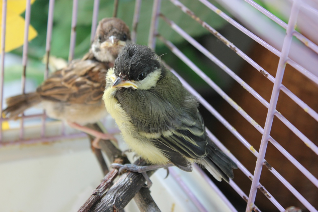 Auch andere Waisenkindern landeten in der Tierarztpraxis. Dank Mühe, Geduld und viel Arbeit schaffen es die meisten und werden im Garten in Schöneiche wieder ausgewildert, so auch die Meise und die Drossel auf den Fotos.