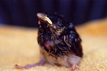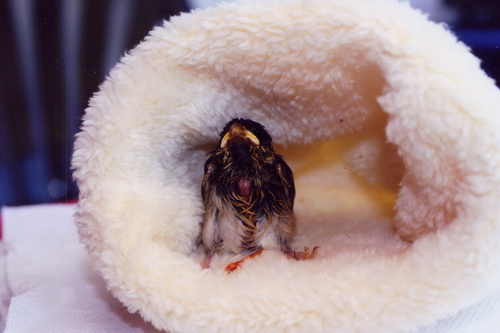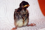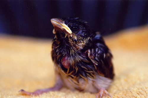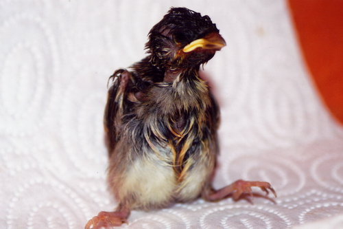 Ich habe keinen Schwanz, keiner weiß warum. Ich habe nur wenig Federn und bin ziemlich klein geraten, deshalb wurde ich noch nicht freigelassen.