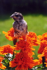 Sonst aber mache ich alles, was Spatzen so tun. Ich bin sehr neugierig, hektisch, nicht besonders mutig, aber meine Zieh-Mama verprügele ich gern, weil es in der Natur eines Spatzen liegt, sich ständig zu streiten – einen Grund dafür kann man schließlich immer finden. Ich klaue gern alles, was glänzt, und beim Frühstück natürlich die Wurst oder den Käse vom Brot.