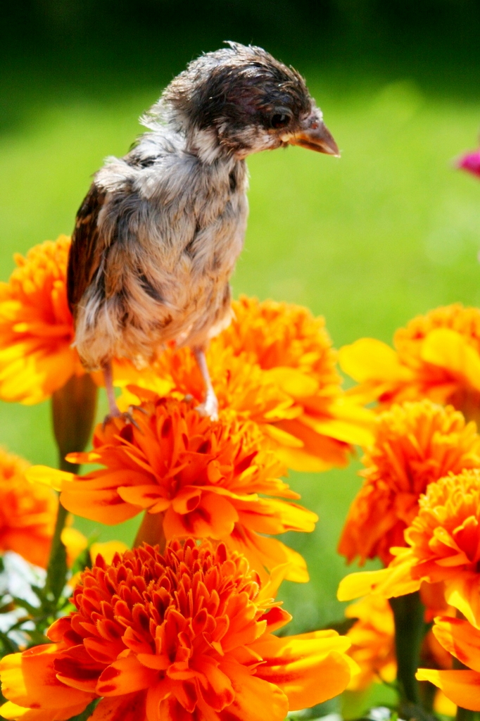 Sonst aber mache ich alles, was Spatzen so tun. Ich bin sehr neugierig,