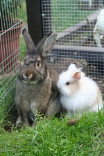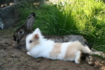 Sowie: Kaninchen Hoppel (Deutscher Riese) lebt in glücklicher Wohngemeinschaft mit Fräulein Nix, einer Mini-Zwerglöwchen-Dame.
