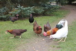 Weitere Fotos: Hahn Peter hat eine 6-köpfige Hühnerfrauen-Familie. Sie legen fleißig Eier und ruinieren den Garten.